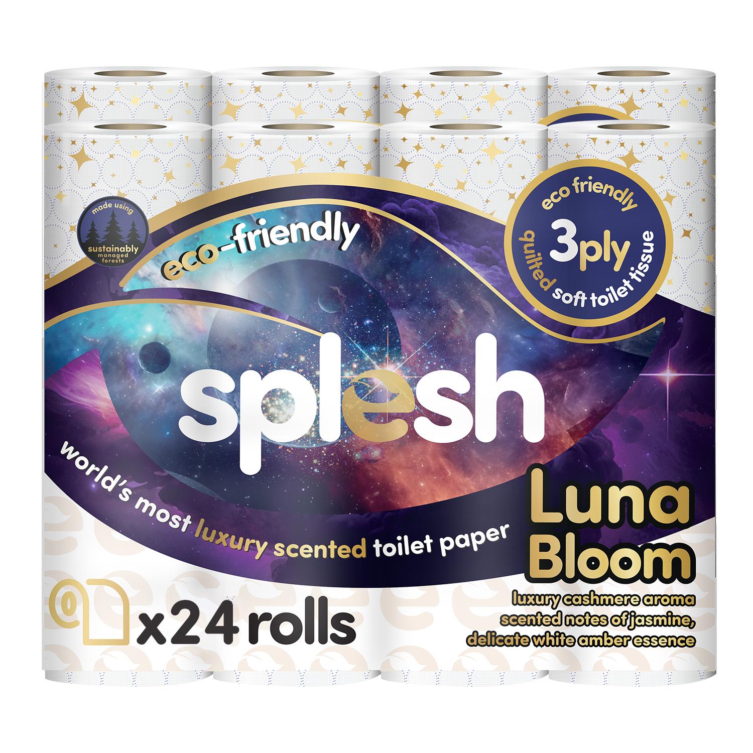 - LUXURY SCENTED: Splesh Luna Bloom toilet rolls are infused with luxury cashmere aroma, scented notes of jasmine, delicate white amber essence